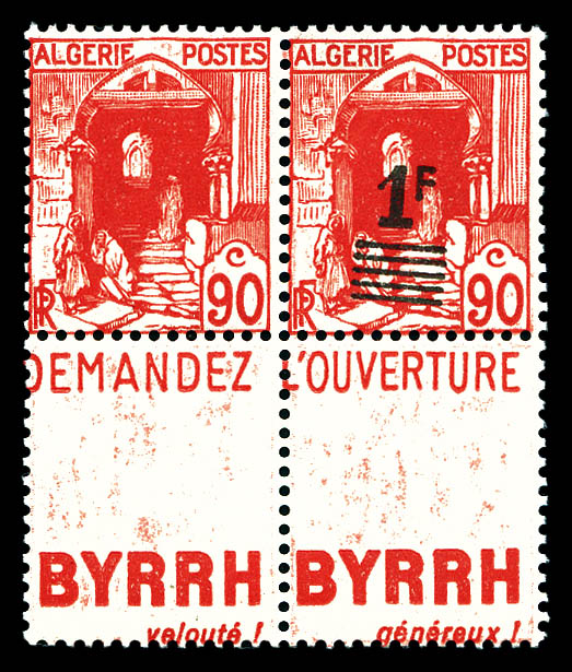 3161 imageN°158, 1F sur 90c rouge type II: exemplaire avec surcharge très deplacée tenant à exemplaire non surchargé avec bandes pub. SUP. R. (signé/certificat) Qualité: ** (Image) (image2) (All Images)