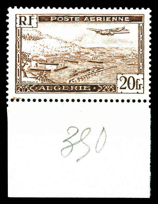 3182 imageN°4A, Avion survolant la rade d'Alger type II, bdf, TB (certificat) Qualité: ** Cote: 340 euros (Image)