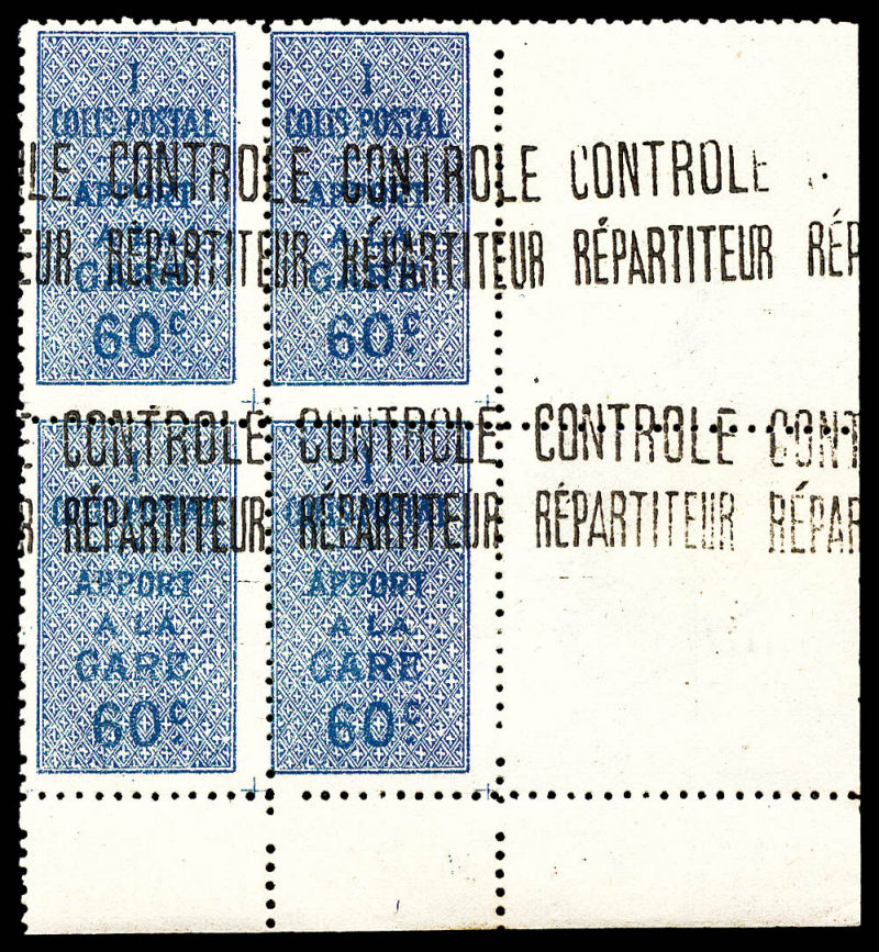 3184 imageN°7C, 60c bleu, en bloc de quatre coin de feuille. SUP. R. (certificat) Qualité: ** Cote: 4364 euros (Image) (image2) (All Images)