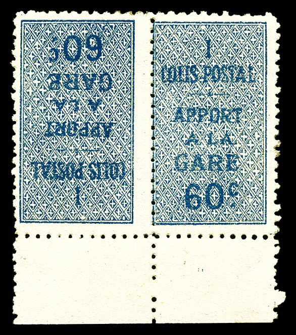 3186 imageN°7Cba, 60c Bleu: tête-bêche sans surcharge (1ex*), bord de feuille. SUP (certificat) Qualité: ** Cote: 3250 euros (Image)