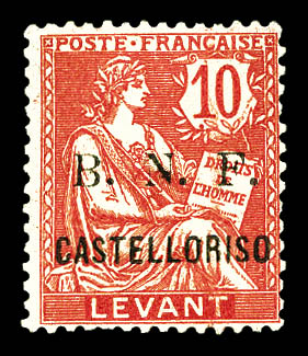3236 imageN°6, 15c vermillon, surcharge 'B.N.F.' renversée seul (et CASTELLORIZO droit), probablement unique. SUPERBE. R.R. (signé Margues/Certificats) Qualité: * (Image) (image2) (All Images)