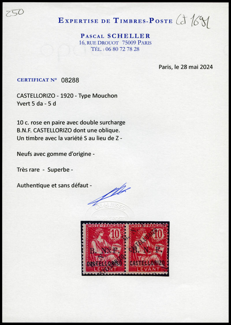 3238 imageN°7ba, 'CASTELLORISO' ('S' au lieu de 'Z') tenant à normal. TTB (certificat) Qualité: * Cote: 600 euros (Image)