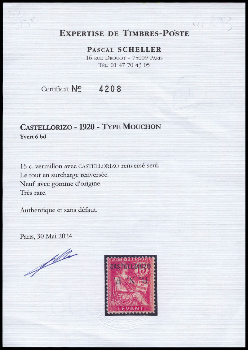 3237 imageN°7a, 'CASTELLORISO' ('S' au lieu de 'Z'). TB (signé Brun/certificat) Qualité: * Cote: 475 euros (Image) (image2) (All Images)