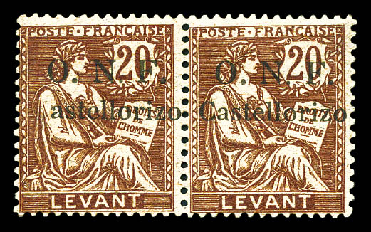 3249 imageN°20b, ' ASTELLORIZO' en paire tenant à normal, quasiment **. TTB (certificat) Qualité: * Cote: 500 euros (Image)