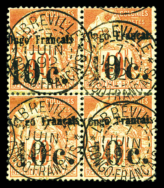 3289 imageN°6, 10c sur 40c rouge-orange type II en bloc de quatre obl càd de LIBREVILLE le 7 juin 92. Rare en bloc de 4. SUP (signé Brun/certificats) Qualité: Oblitéré (Image) (image2) (All Images)
