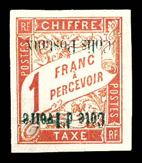 3324 imageN°4B, 1f rose sur paille, SANS COTE D'IVOIRE, petit bord de feuille, tirage 75 exemplaires. SUPERBE. R.R. (signé Brun/certificat) Qualité: * Cote: 4500 euros (Image)
