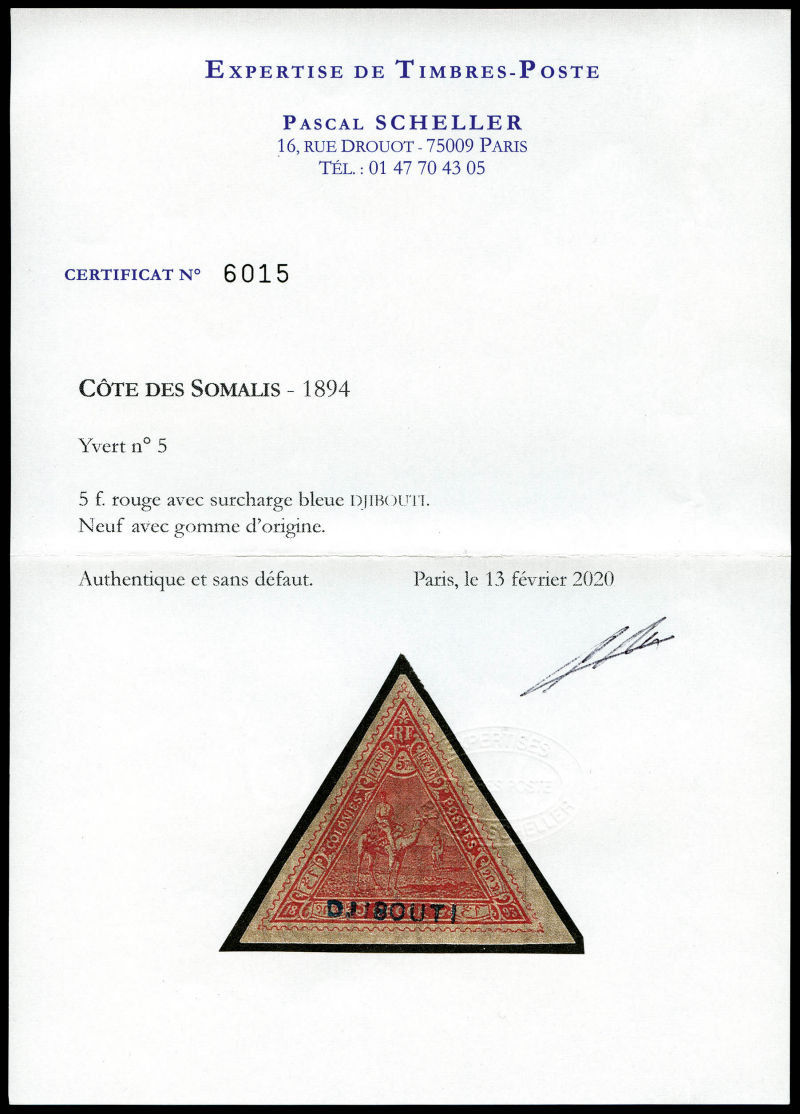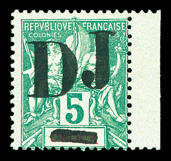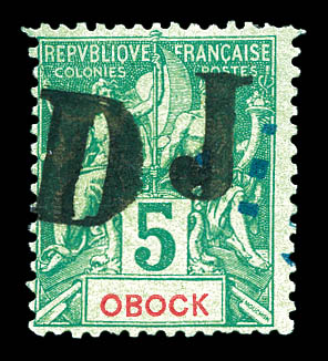 3335 imageN°1a, 5c vert: Sans barres sur OBOCK. SUP. R. (signé Calves/certificat) Qualité: Oblitéré Cote: 1050 euros (Image)