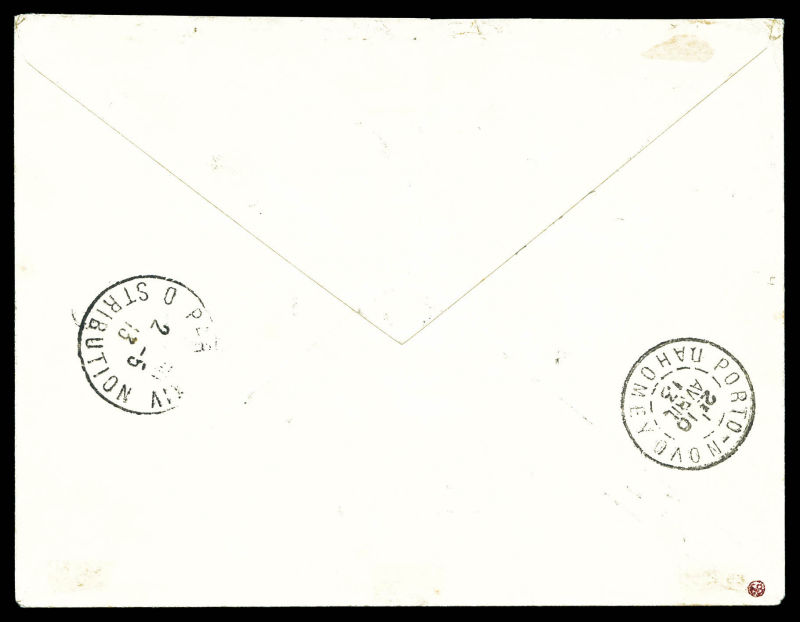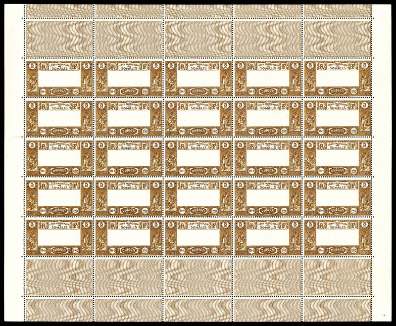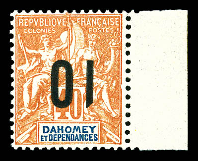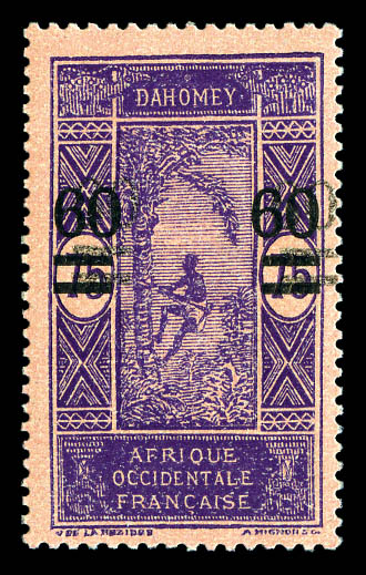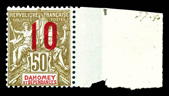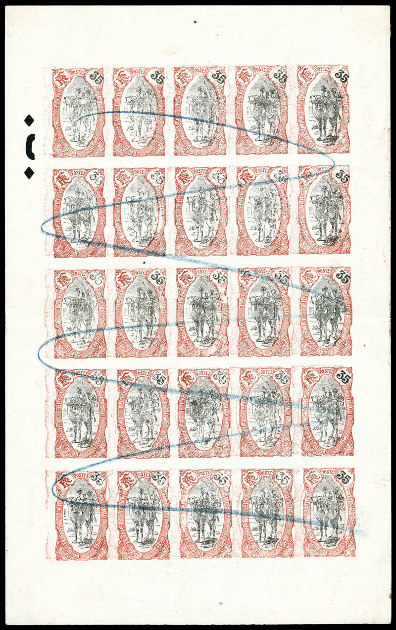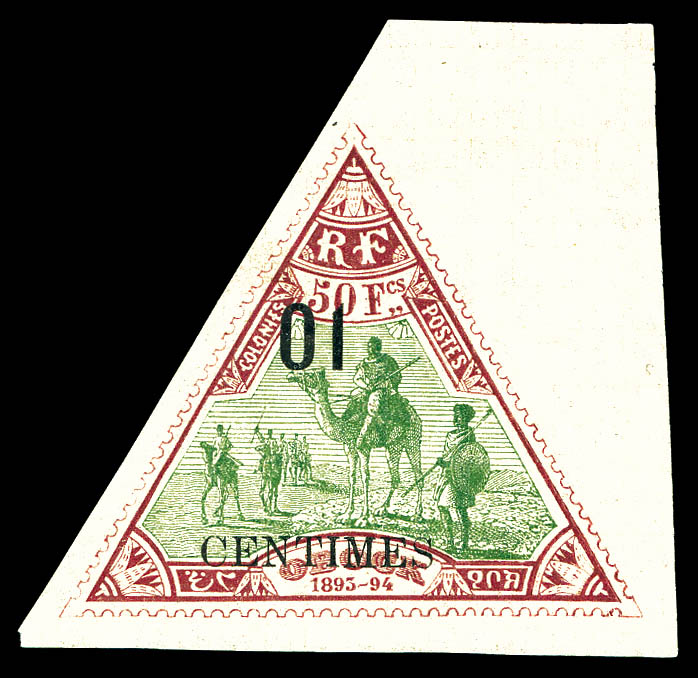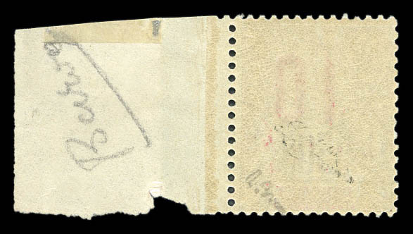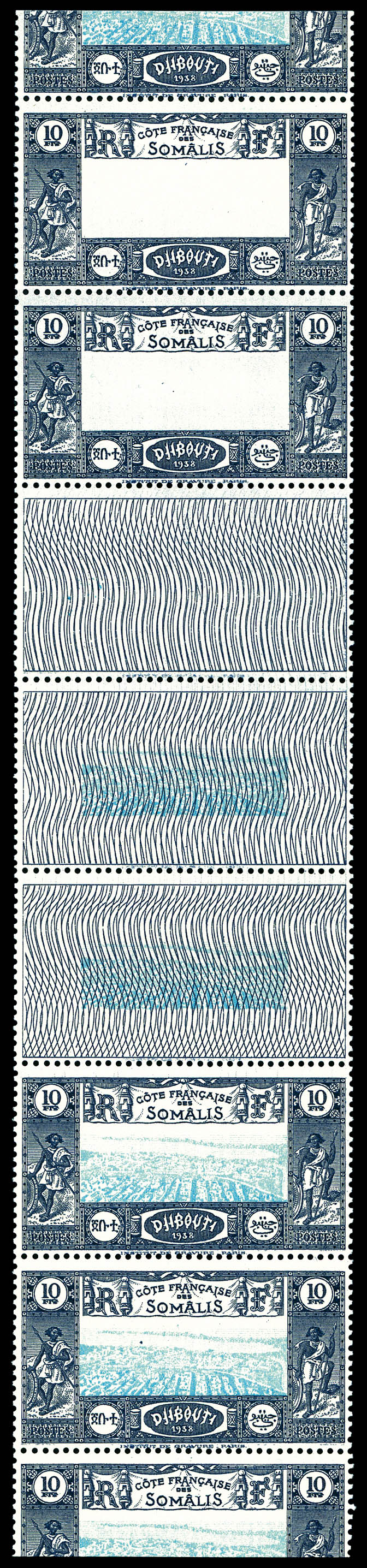 bleu foncé et turquoise, bande de 4 dont 2 timbres du haut avec centre omis, les 2 du bas normaux, séparés par intervalles donc à cheval sur 2 feuilles. Le centre seul est imprimé sur 2 des intervalles. SUPERBE. R.R.R. (certificat) Qualité: ** (Image)