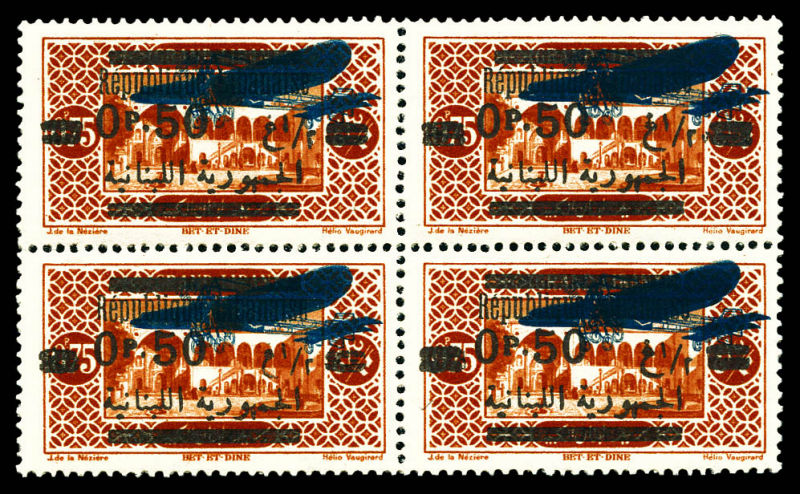 3545 imageN°38b, 0 pi 50 sur 0 pi 75: double surcharge avion en bloc de 4 (1ex*). TTB Qualité: ** Cote: 475 euros (Image)