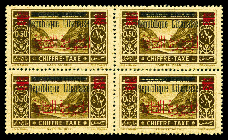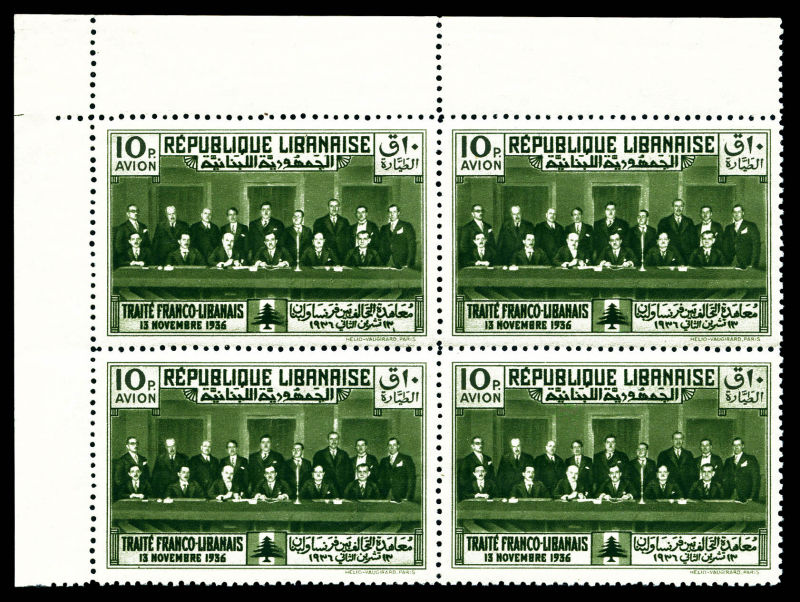 3547 imageN°56A, Non émis, Traité Franco-Libanais, 10pi vert en bloc de quatre cdf, SUP. R. (certificat) Qualité: ** Cote: 2520 euros (Image)