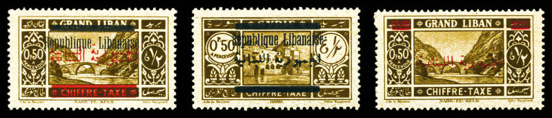 3556 imageN°21a/c, 0 pi 50: Double surcharge arabe, surcharge Francaise omise et surcharge sur taxe n°32 de Syrie, les 3 variétés SUP Qualité: ** (Image)