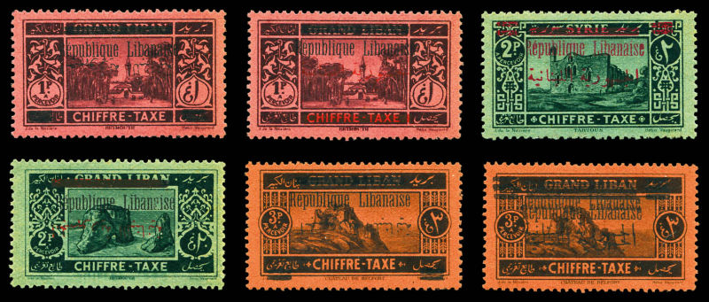 3558 imageN°22a, 22b, 23 sur timbre de Syrie, 23a, 24a, 24 double surcharges, les 6 variétés SUP Qualité: ** (Image)