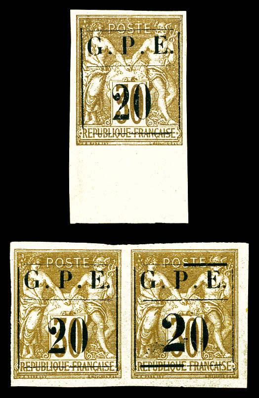 3552 imageN°82b/84c, Les 3 valeurs non dentelées sans surcharge (n°83b*). SUP. R. (certificat) Qualité: ** Cote: 2090 euros (Image)