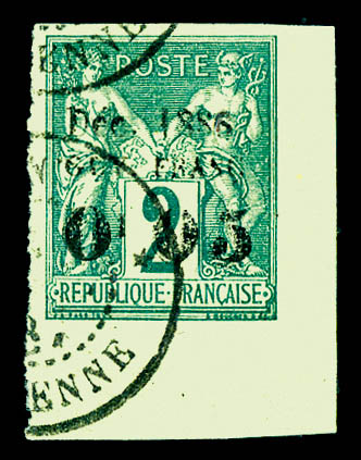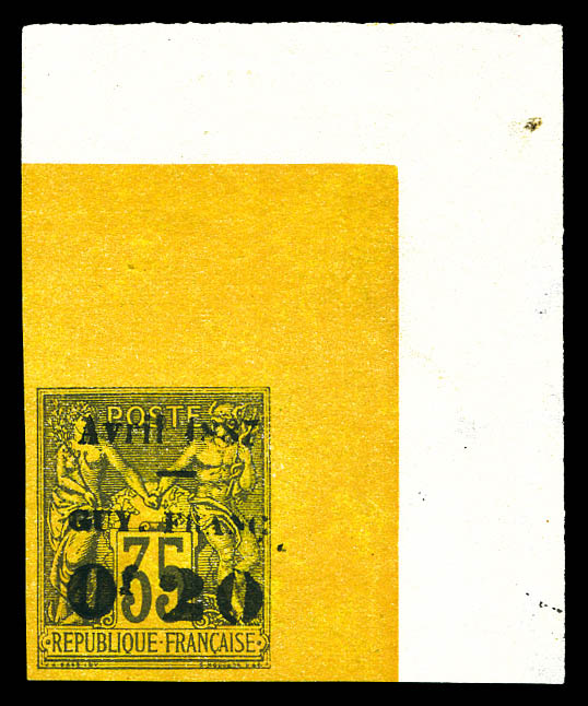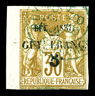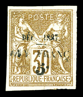 3592 imageN°7, 5c sur 30c de 1877, bord de feuille, tirage 300 exemplaires. SUP. R. (signé Champion/certificat) Qualité: Oblitéré Cote: 1900 euros (Image)