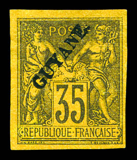 3596 imageN°12, 35c violet-noir sur jaune, quatre belles marges. SUPERBE. R.R. (signé Brun/certificat) Qualité: (*) Cote: 3950 euros (Image)