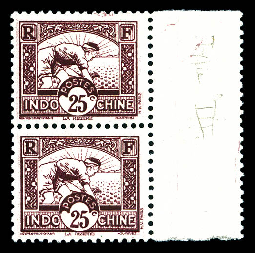 3667 imageN°165b, Rizière: 25c lilas Type III en paire bdf, FRAICHEUR POSTALE, SUP (certificat) Qualité: ** Cote: 360 euros (Image)