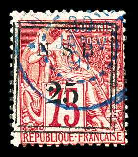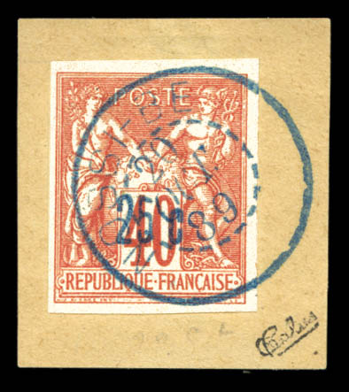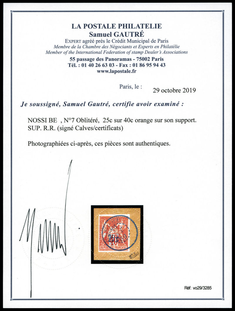 3863 imageN°7, 25c sur 40c orange surcharge bleu pâle, sur son support. SUP. R.R. (signé Calves/certificats) Qualité: Oblitéré Cote: 4750 euros (Image) (image2) (All Images)