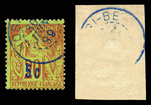 3866 imageN°9B, 5c sur 20c brique sur vert, 3ème tirage surcharge indigo. TTB. R.R. (signé Brun/Scheller/certificat) Qualité: Oblitéré Cote: 2850 euros (Image)