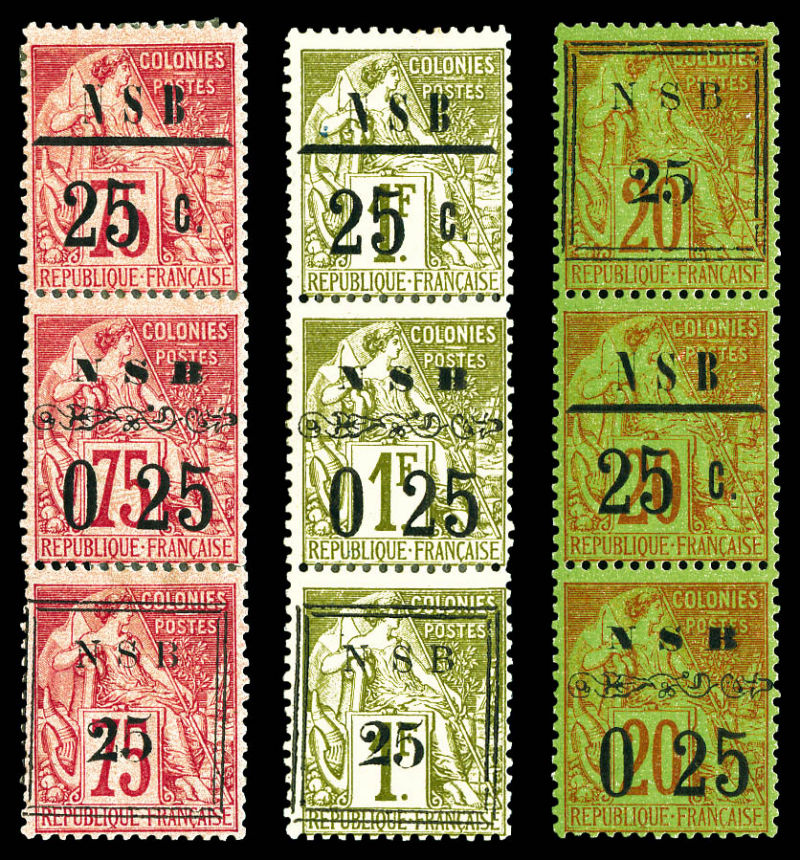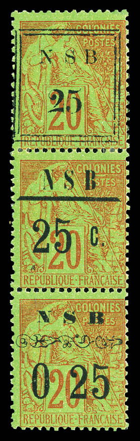 3868 image20c s 20c brique sur vert, 25c sur 75c rose et 25c sur 1f olive en bandes de trois verticales avec les 3 types se tenant. TB. R.R. (certificat) Qualité: * Cote: 15750 euros (Image)