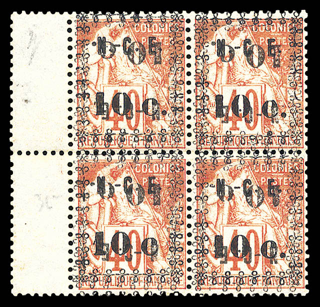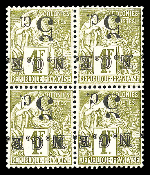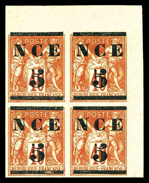 3881 imageN°13c, 10c sur 40c: Double surcharge dont une renversée en bloc de 4 bdf. TB (certificat) Qualité: ** Cote: 1240 euros (Image)