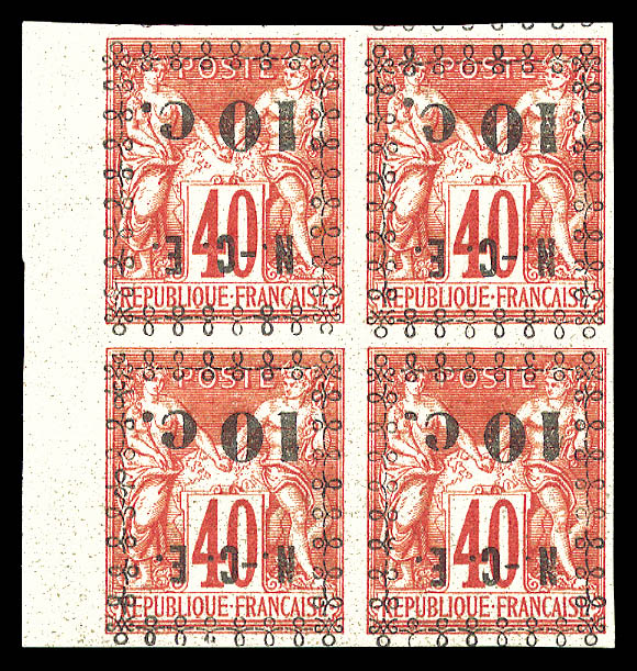 3879 imageN°11a, 10c sur 40c rouge-orange, surcharge renversée en bloc de 4 bdf. TTB Qualité: ** Cote: 880 euros (Image)