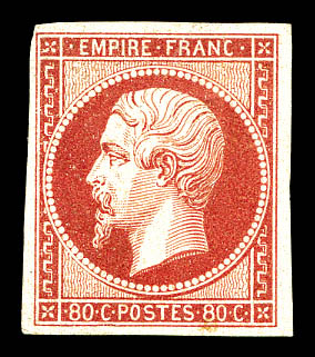 390 imageN°17Ba, 80c rose vif, grandes marges avec voisins et bord de feuille latéral. Pièce EXCEPTIONNELLE de GRAND LUXE. RR, (Certificats) Qualité: ** (Image) (image2) (All Images)