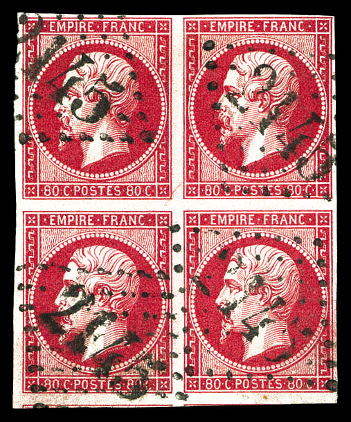 384 imageN°17B, 80c rose, bloc de quatre obl GC. TTB (certificat) Qualité: Oblitéré Cote: 875 euros (Image)