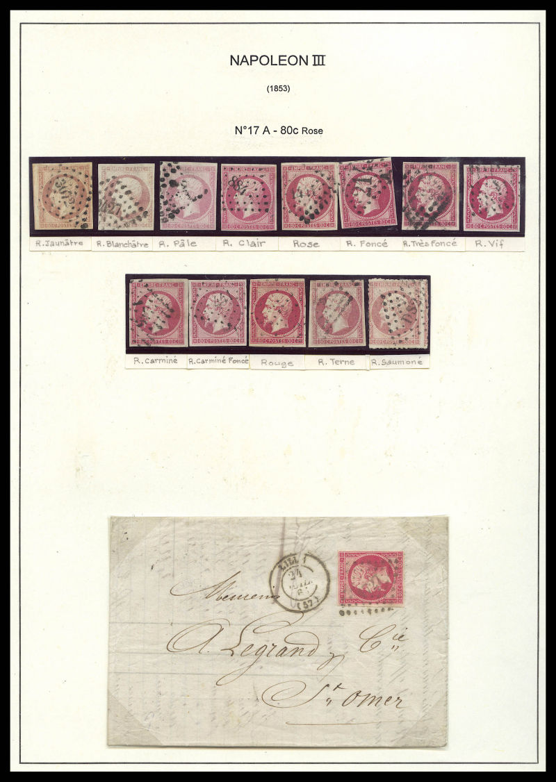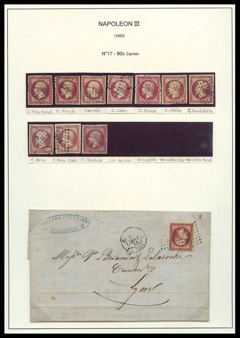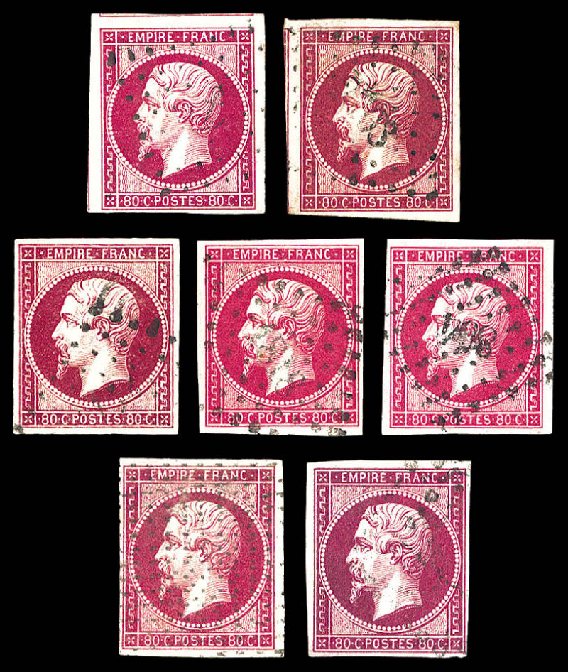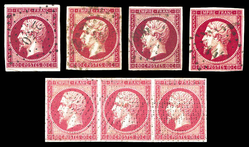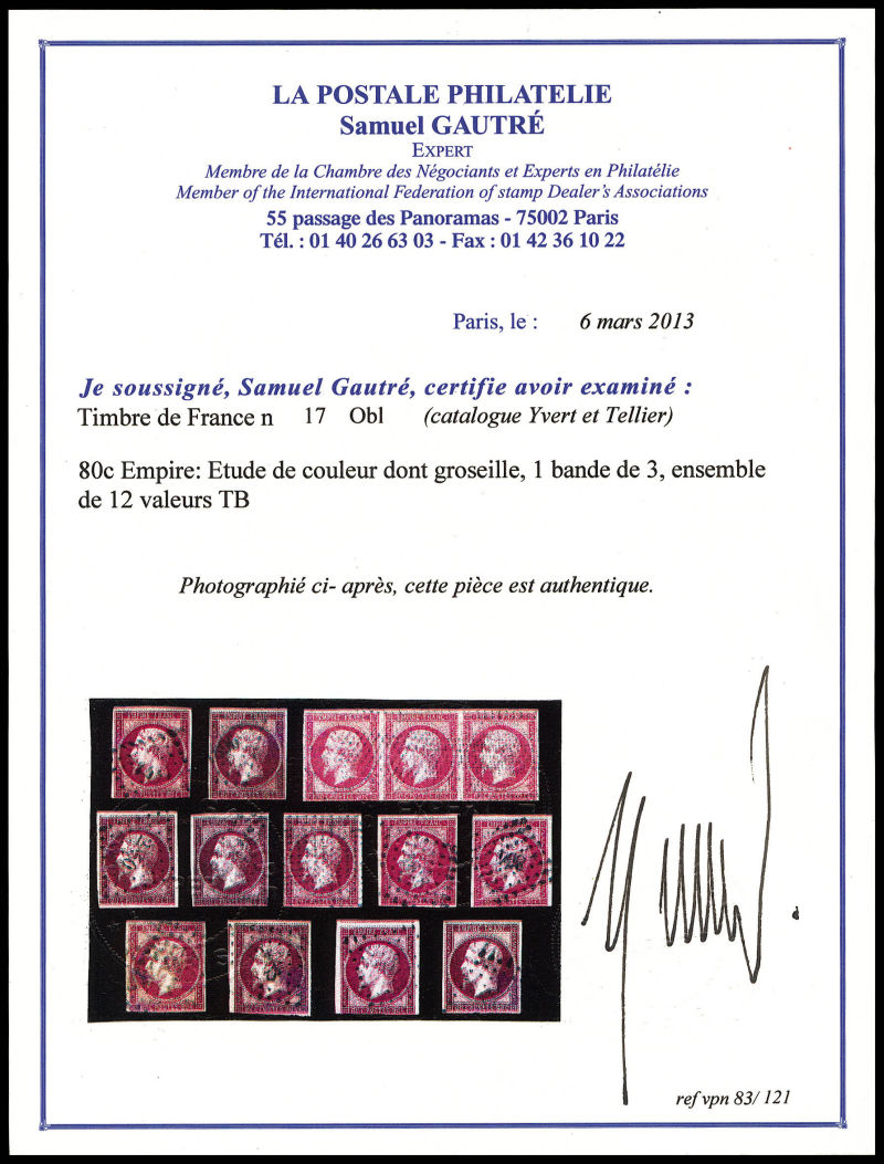 398 imageN°17, 80c Empire: Etude de couleur dont groseille, 1 bande de 3 obl roulette de points, ensemble de 12 valeurs TB Qualité: Oblitéré (Image) (image2) (image3) (All Images)