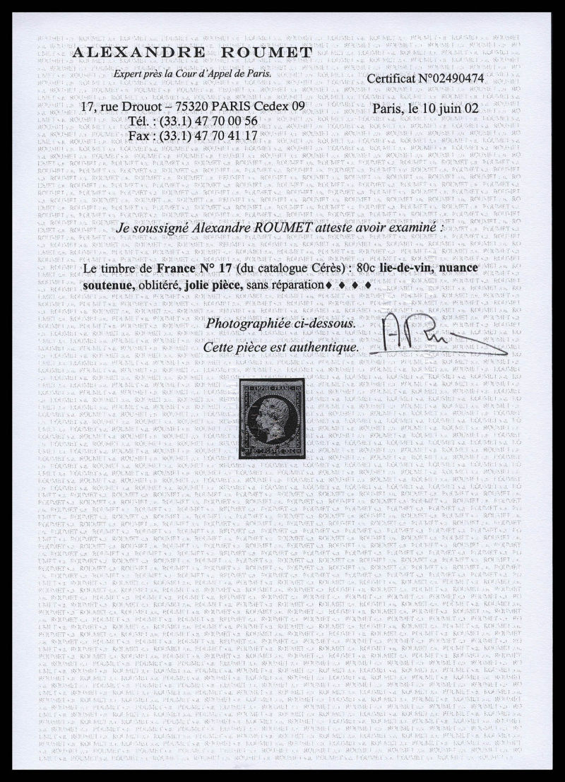 400 imageN°17, 80c lie de vin, nuance exceptionnelle. SUP (signé/certificats) Qualité: Oblitéré (Image) (image2) (All Images)