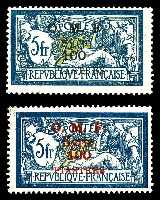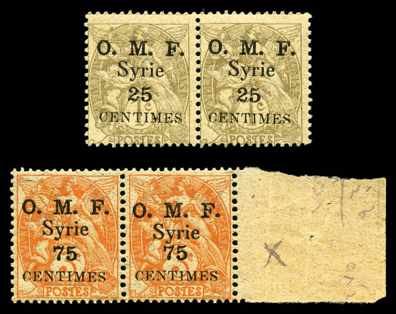 4099 imageN°33b, 31b et 33b, 25c sur 1c gris et 75c sur 3c orange: surcharges rapprochées entre la valeur et Syrie tenant à normaux. TTB (certificat) Qualité: ** Cote: 705 euros (Image)