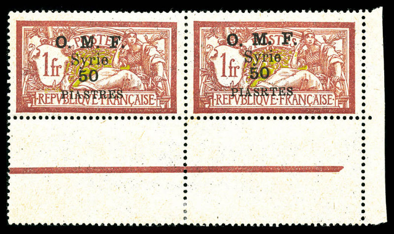 4100 imageN°42b, 50 pi s 1f lie de vin et olive: Erreur 'PIASRTES' au lieu de 'PIASTRES' tenant à normal en paire coin de feuille, fraîcheur postale. SUP (certificat) Qualité: ** Cote: 5250 euros (Image)