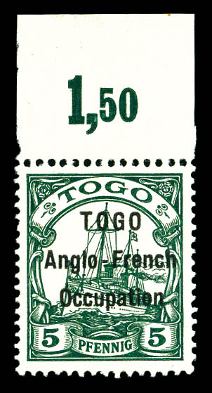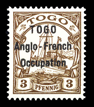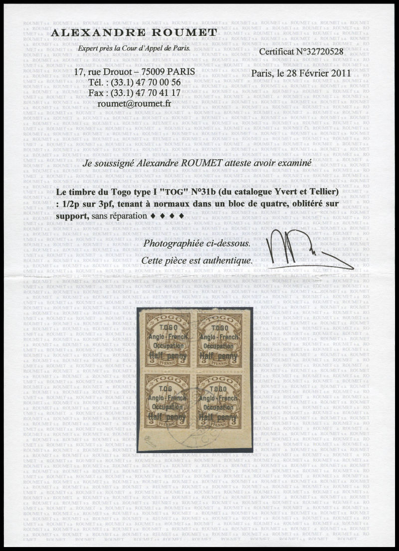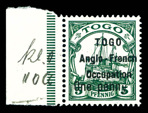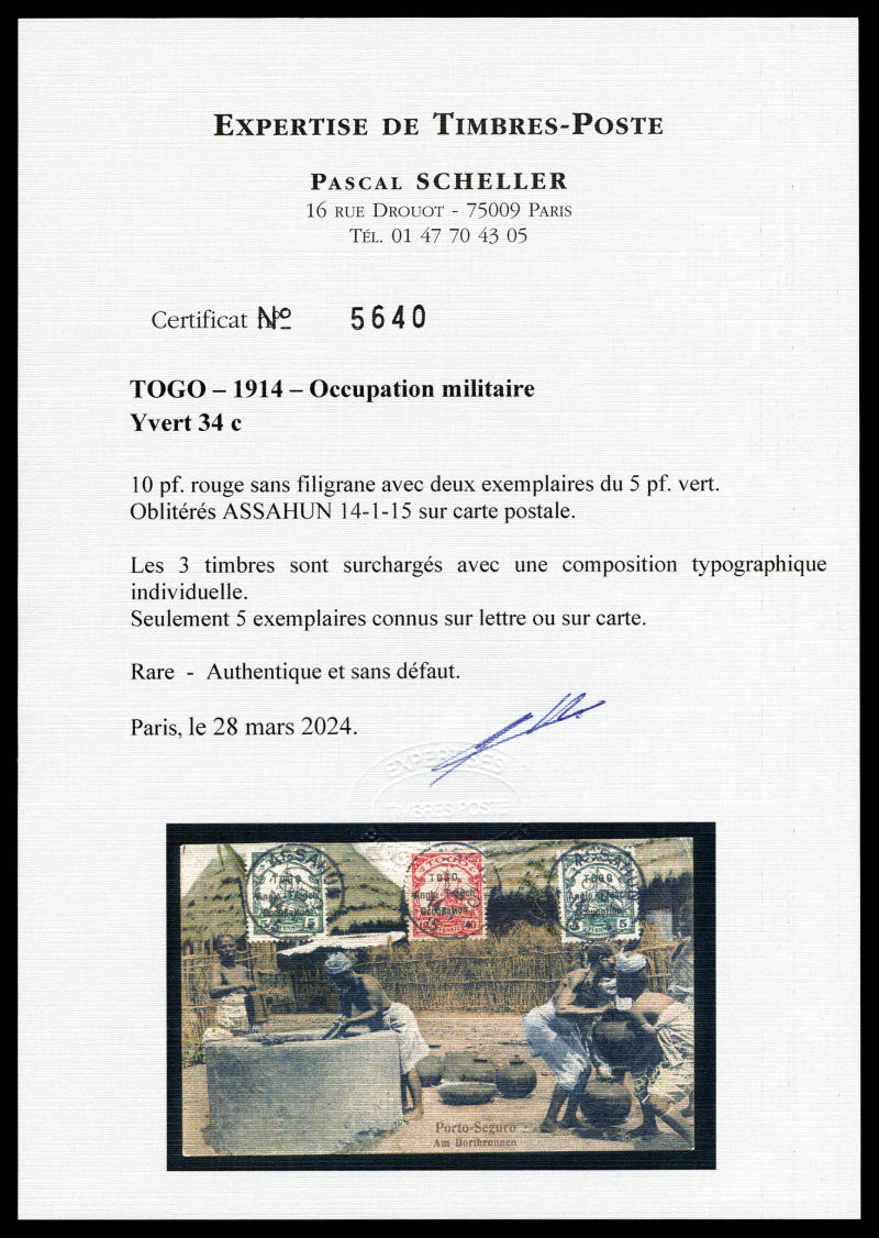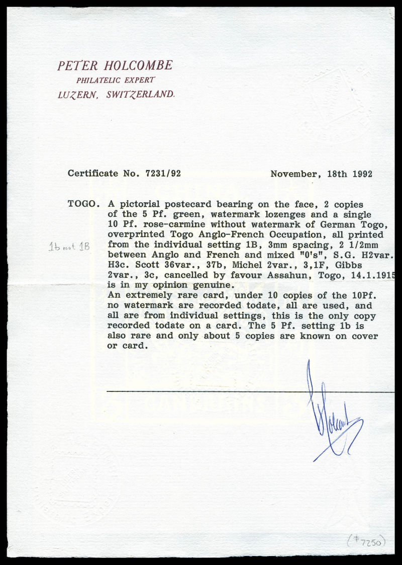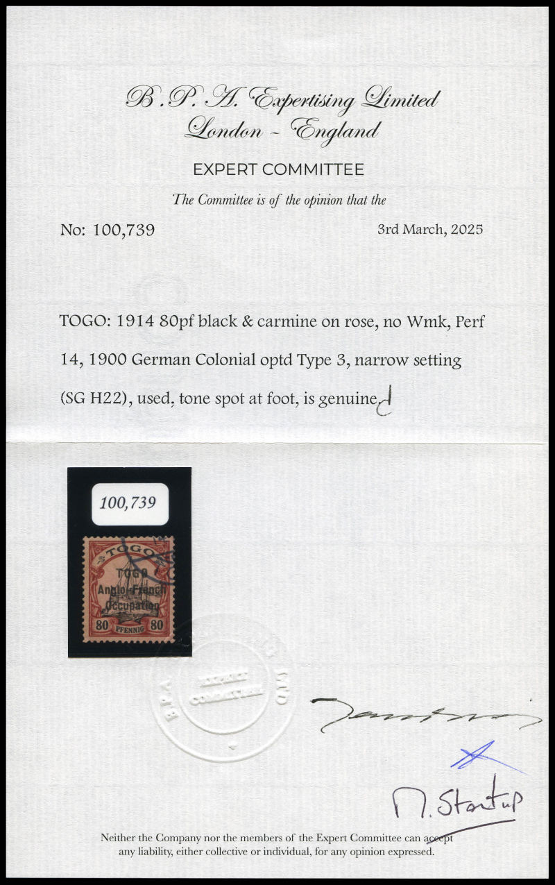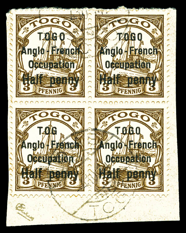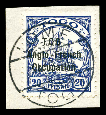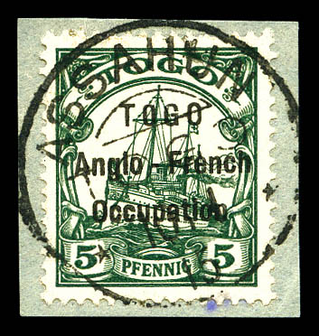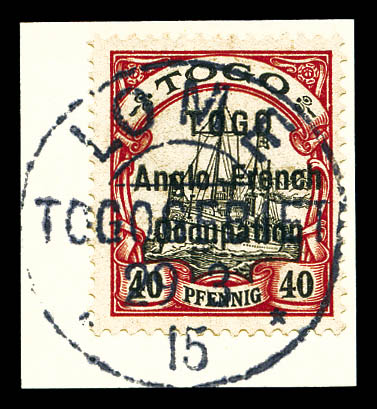 pfennig, Composition individuelle (2 1/2 mm entre Anglo et French, Togo avec un 'O' etroit et Occupation avec un 'O' large), obl càd ASSAHUN le 10.1.15 sur son support. TTB (signé/certificat) Qualité: Oblitéré (Image)