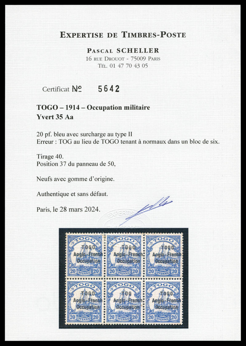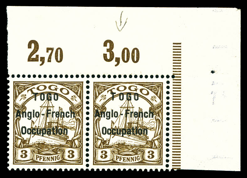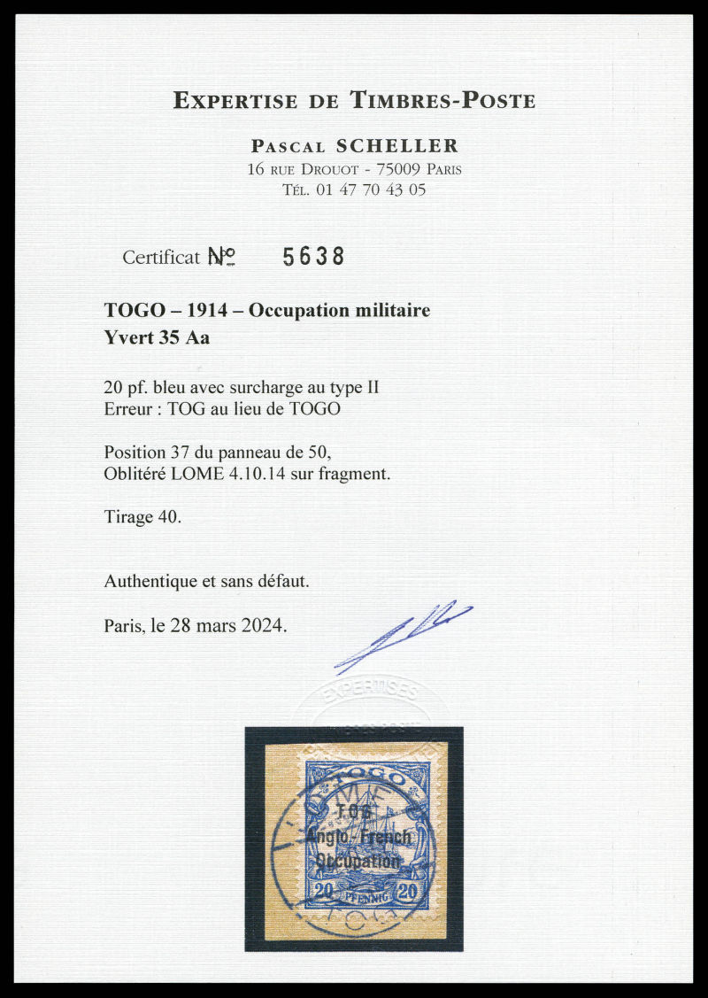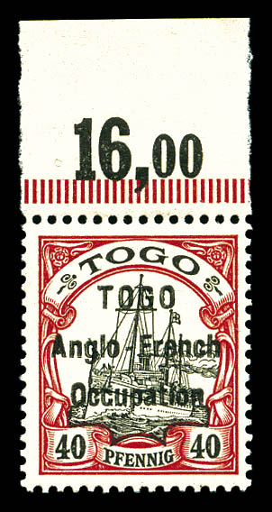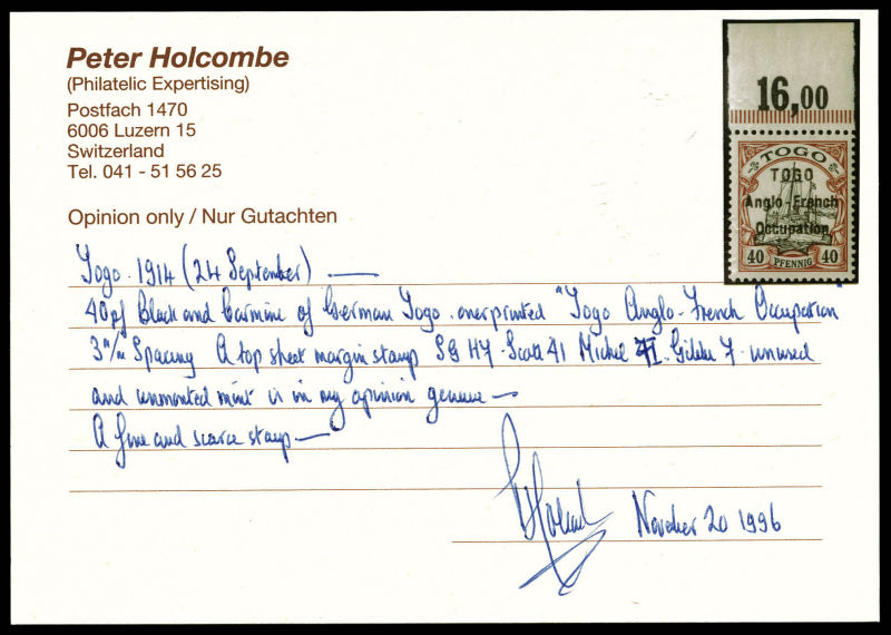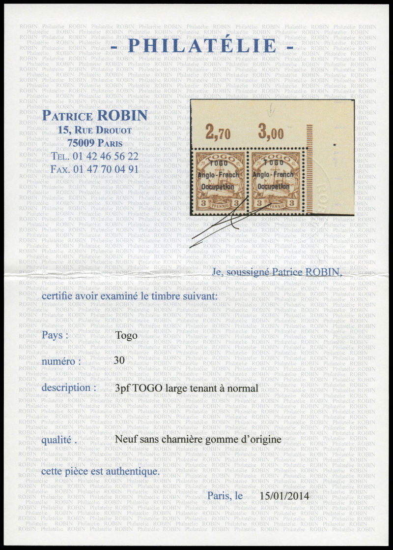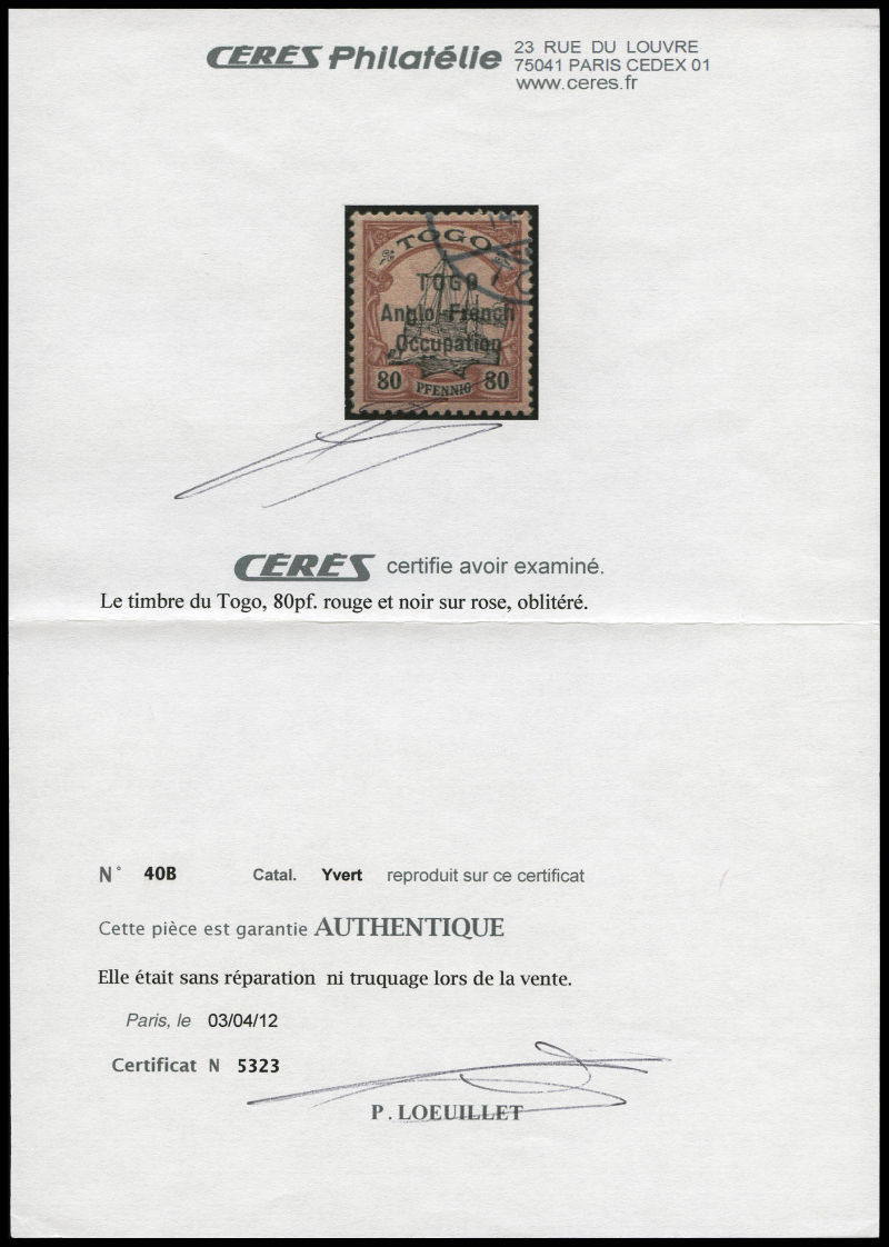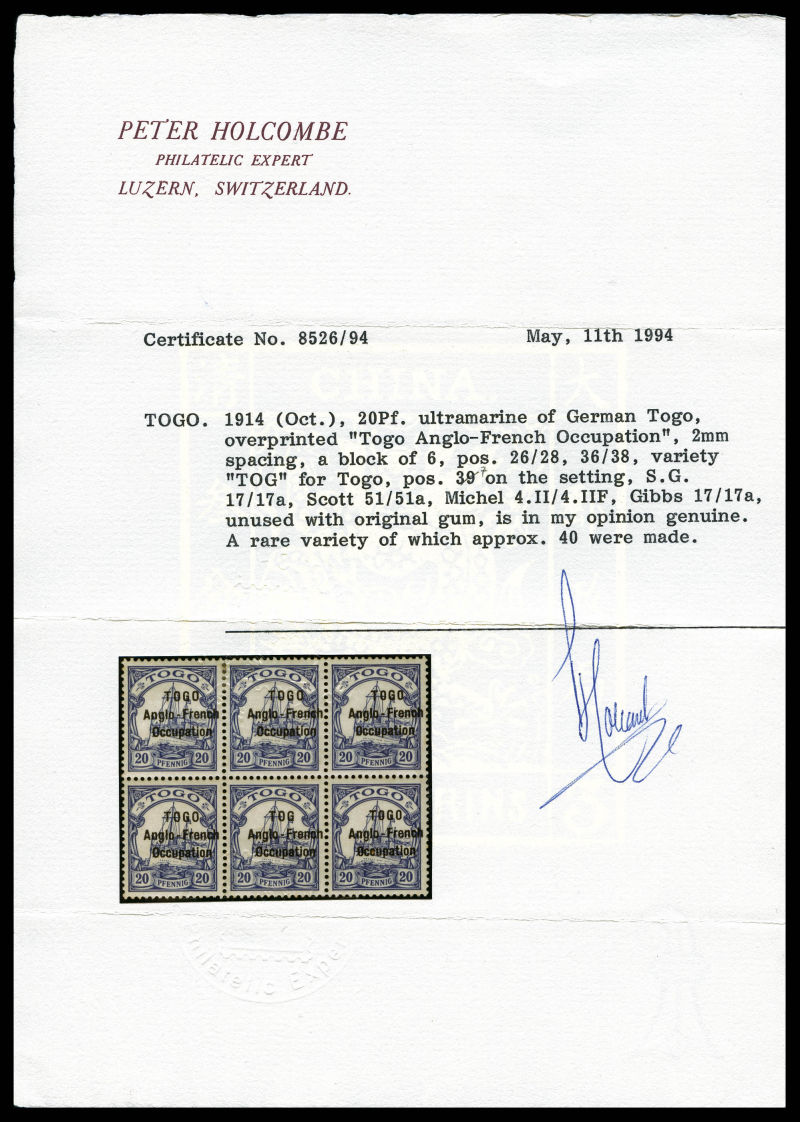 pfennig, Composition individuelle (2 1/2 mm entre Anglo et French, Togo avec un 'O' etroit et Occupation avec un 'O' large), obl càd ASSAHUN le 10.1.15 sur son support. TTB (signé/certificat) Qualité: Oblitéré (Image)