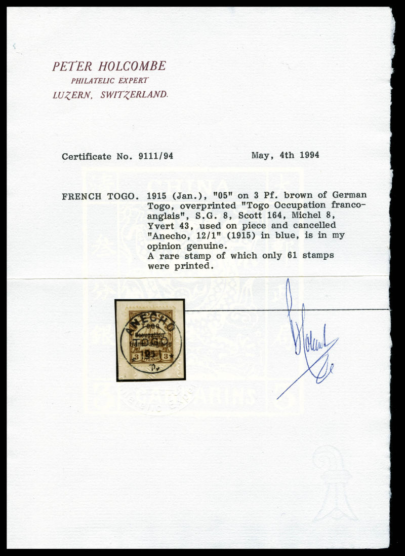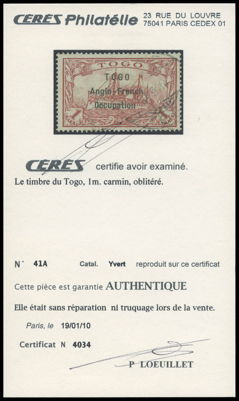 4183 imageN°41, 1 Mark carmin obl càd de Lome le 30.9.1914, tirage 100 exemplaires. SUP. R. (certificats) Qualité: Oblitéré Cote: 5750 euros (Image) (image2) (All Images)