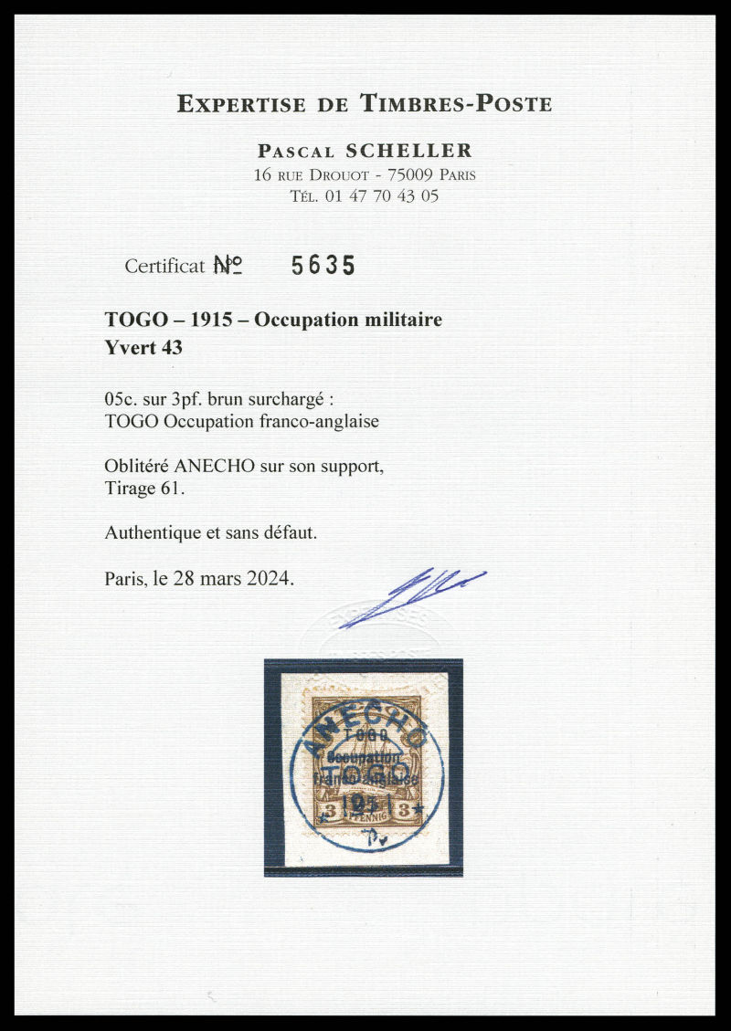 4185 imageN°43, 05c sur 3 pf brun obl ANECHO sur son support, tirage 61 exemplaires. SUPERBE. R.R. (signé Maury/certificats) Qualité: Oblitéré Cote: 6850 euros (Image) (image2) (image3) (All Images)