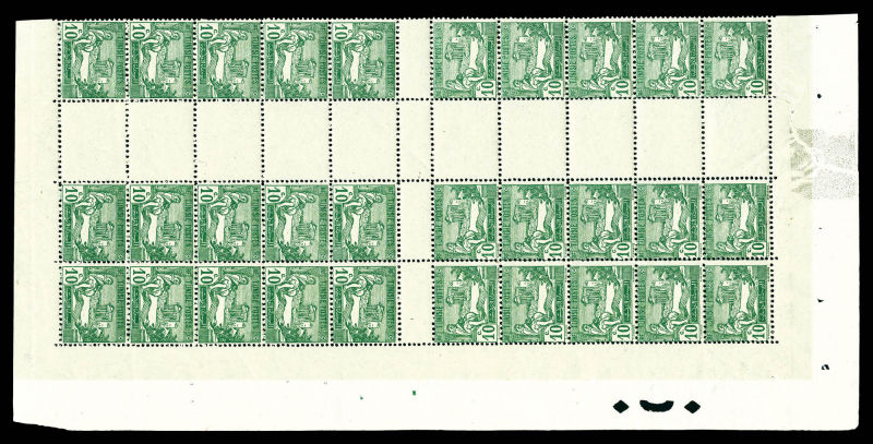 4203 imageN°76-C1, Type Dougga, 10c vert, bloc de 30 timbres provenant d'une feuille ayant servi à la fabrication de carnet. TB. R. Qualité: ** (Image)