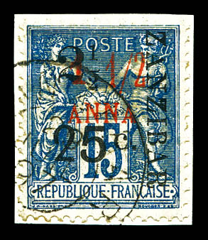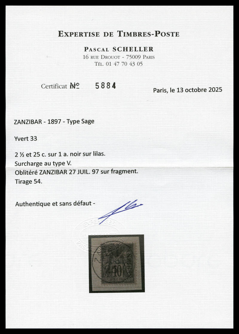 4216 imageN°33, 2 1/2 et 25c sur 1a surcharge au Type V sur son support, tirage 54 exemplaires. SUPERBE. R.R. (signé Scheller/certificat) Qualité: Oblitéré Cote: 1250 euros (Image) (image2) (image3) (All Images)