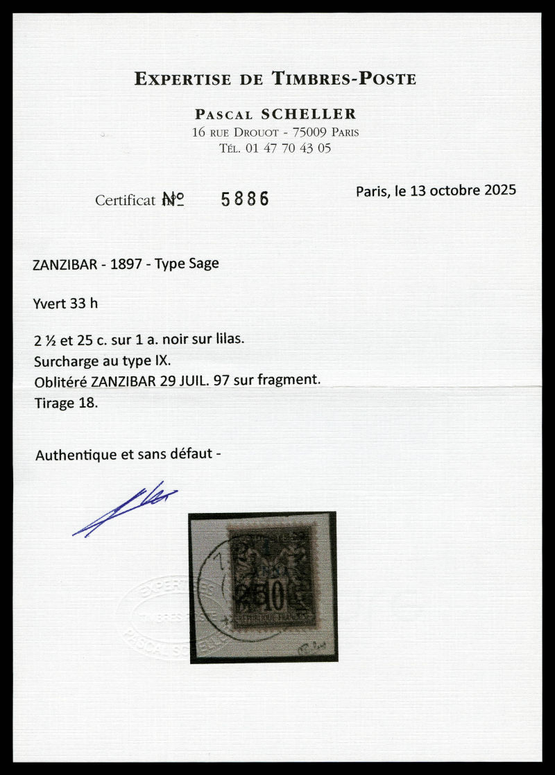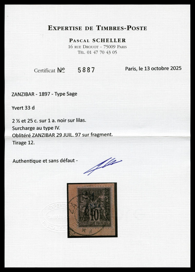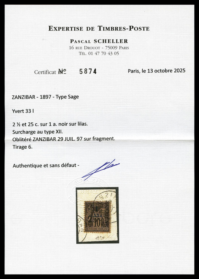 4219 imageN°33l, 2 1/2 et 25c sur 1a TYPE XII sur son support., tirage 6 SUPERBE. R.R. (signé Scheller/certificats) Qualité: Oblitéré Cote: 1700 euros (Image) (image2) (image3) (All Images)