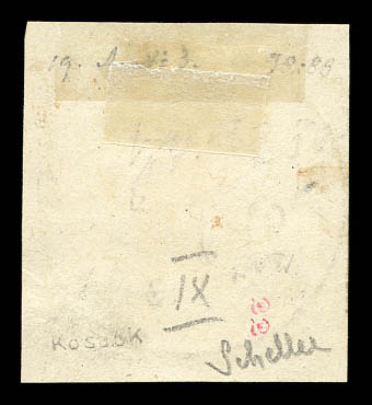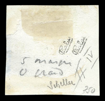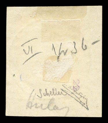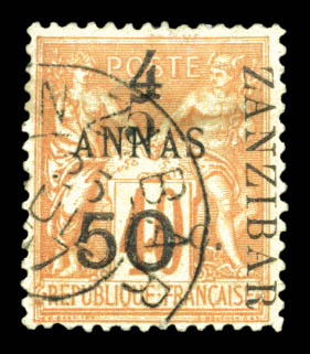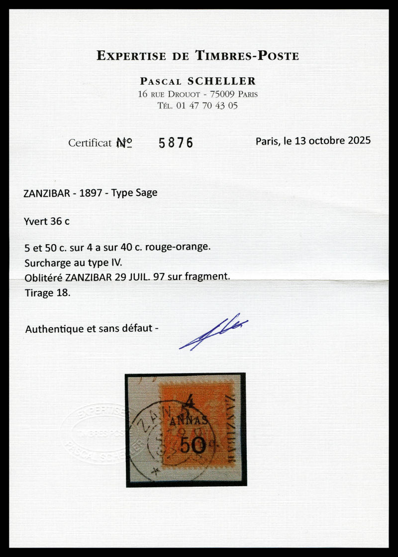 4229 imageN°36c, 5 et 50c sur 4 annas sur 40c rouge-orange Type IV su son suppoprt, tirage 18. SUPERBE. R.R. (signé Scheller/Calves/certificats) Qualité: Oblitéré Cote: 1575 euros (Image) (image2) (image3) (All Images)