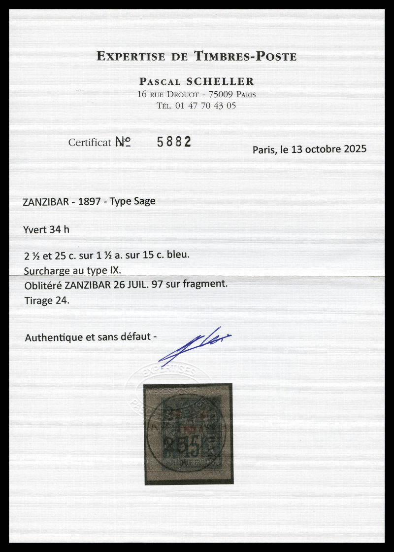 4222 imageN°34h, 2 1/2 et 25c sur 1 1/2 a Type IX sur son support, tirage 24. SUP. R.R. (signé Scheller/certificats) Qualité: Oblitéré Cote: 1470 euros (Image) (image2) (image3) (All Images)