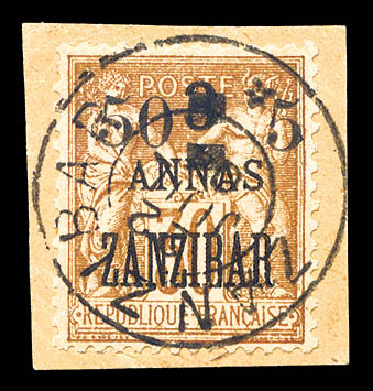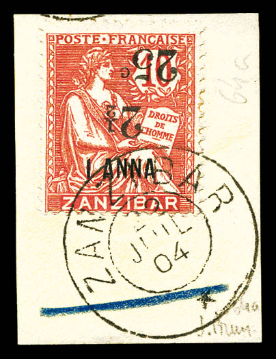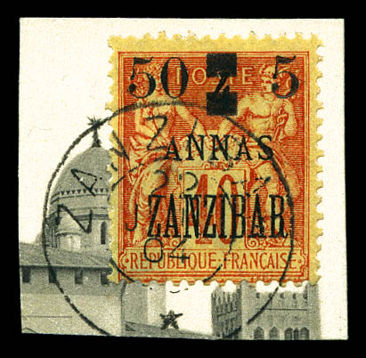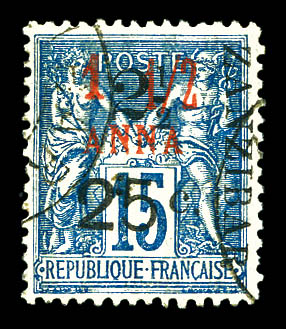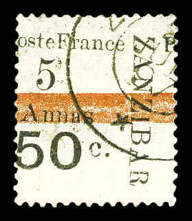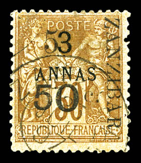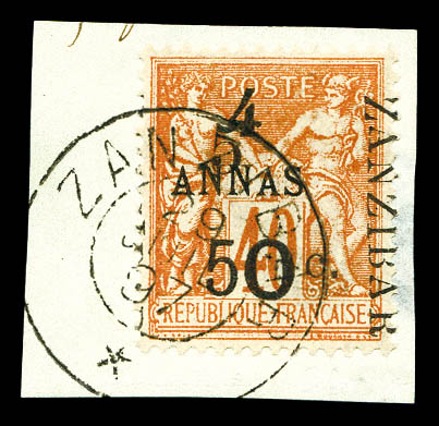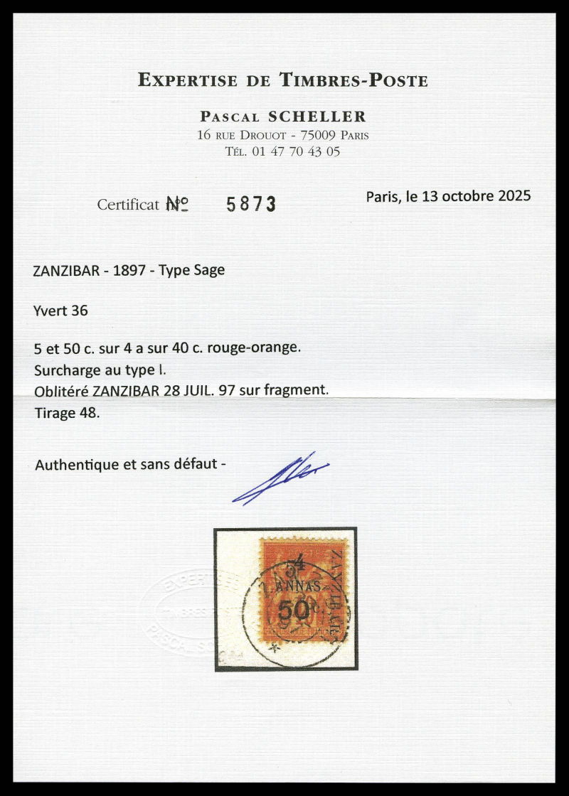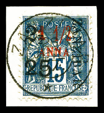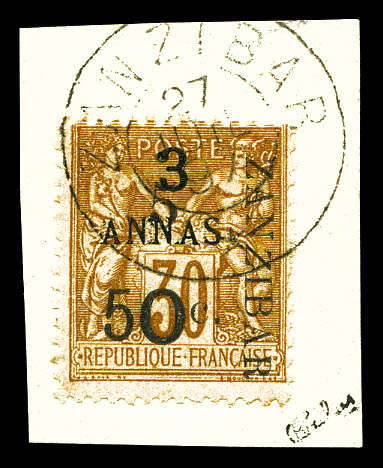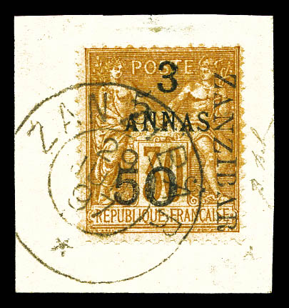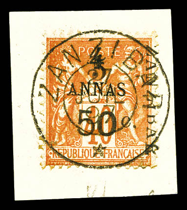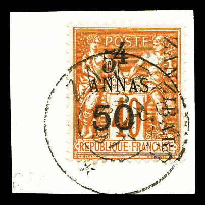 4227 imageN°36, 5 et 50c sur 4 annas sur 40c Type I sur son support, tirage 48. SUPERBE. R.R. (signé Scheller/certificats) Qualité: Oblitéré Cote: 1350 euros (Image) (image2) (image3) (All Images)
