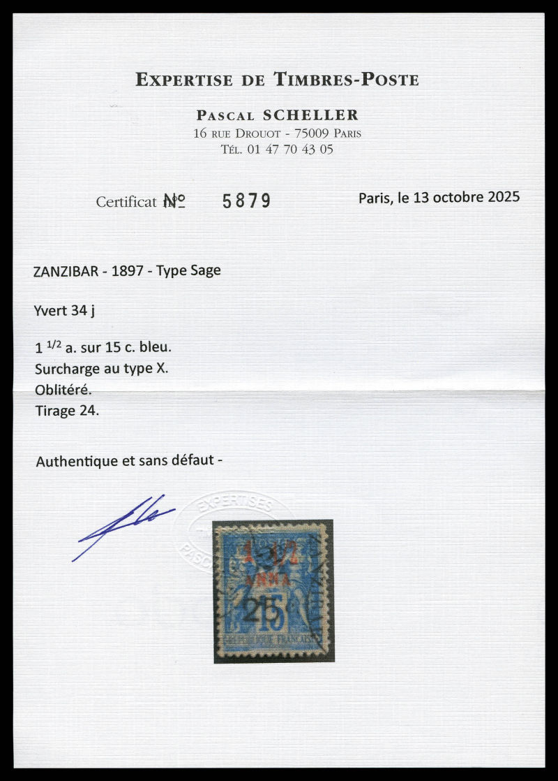4223 imageN°34j, 2 1/2 et 25c sur 1 1/2 a. TYPE X, tirage 24, SUP. R. (signé Scheller/Brun/certificats) Qualité: Oblitéré Cote: 1470 euros (Image) (image2) (image3) (All Images)