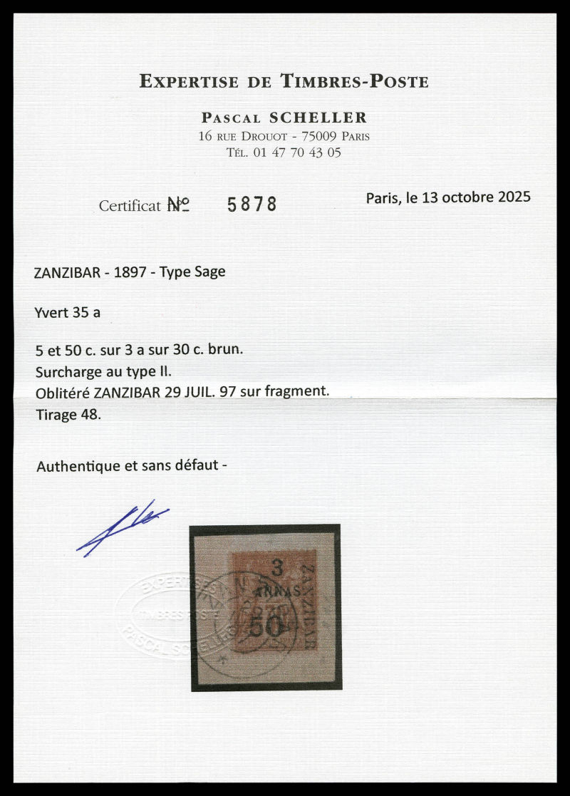 4225 imageN°35a, 5 et 50c sur 3a type II sur support, tirage 48. TTB. R. (signé Scheller/certificats) Qualité: Oblitéré Cote: 1150 euros (Image) (image2) (image3) (All Images)
