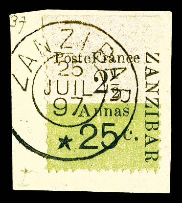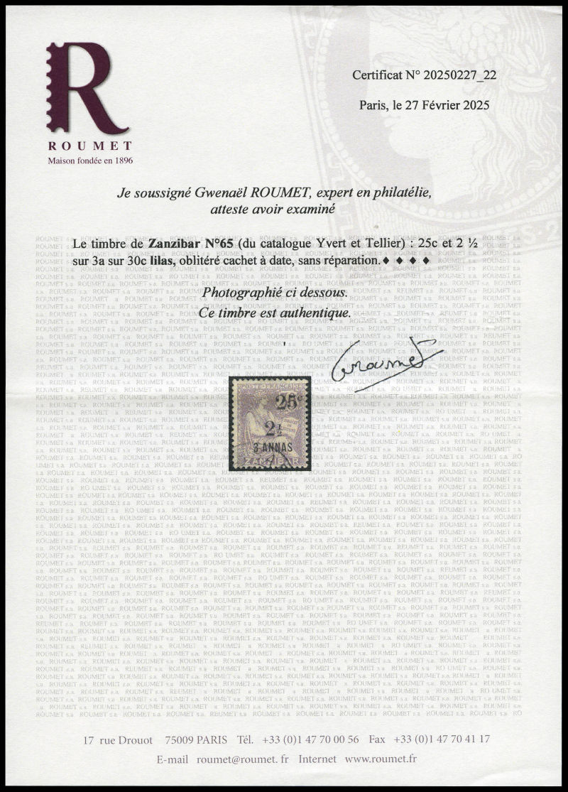 4241 imageN°65, 25c et 2 1/2 sur 3 annas sur 30c. SUPERBE. R.R. (signé Calves/certificats) Qualité: Oblitéré Cote: 3050 euros (Image) (image2) (image3) (All Images)