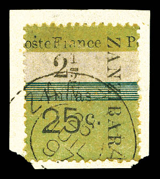 4240 imageN°64a, 25c et 2 1/2 sur 1a sur 10c: Surcharge à éléments renversés. SUP. R.R. (certificat) Qualité: Oblitéré Cote: 1850 euros (Image) (image2) (All Images)