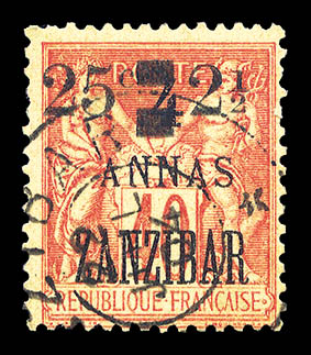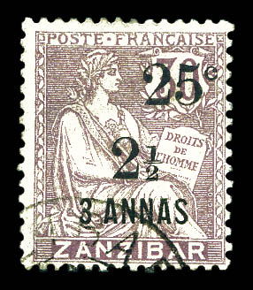 4235 imageN°58, 25c et 2 1/2 sur 4 annas sur 40c. SUP. R.R. (signé/certificat) Qualité: Oblitéré Cote: 1350 euros (Image)