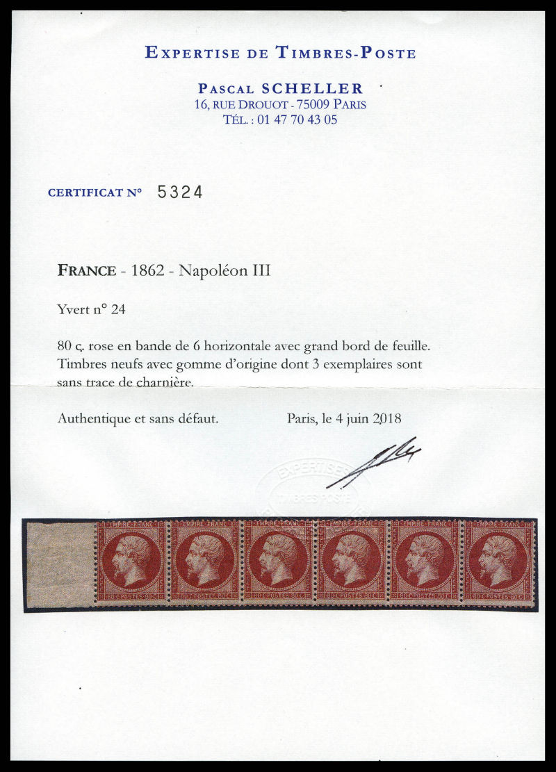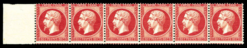 502 imageN°24, 80c rose en bande de 6 horizontale avec grand bord de feuille latéral (3ex*), fraîcheur postale. SUP. R. (signé Brun/certificats) Qualité: ** (Image) (image2) (image3) (image4) (All Images)