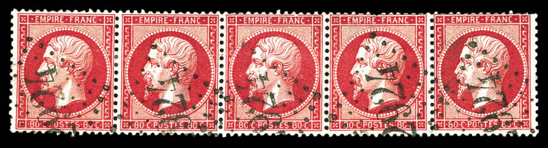 506 imageN°24, 80c rose, bande de cinq obl GC 2924.TB (signé Scheller) Qualité: Oblitéré Cote: 650 euros (Image)