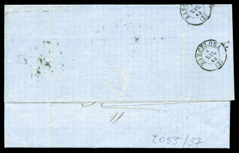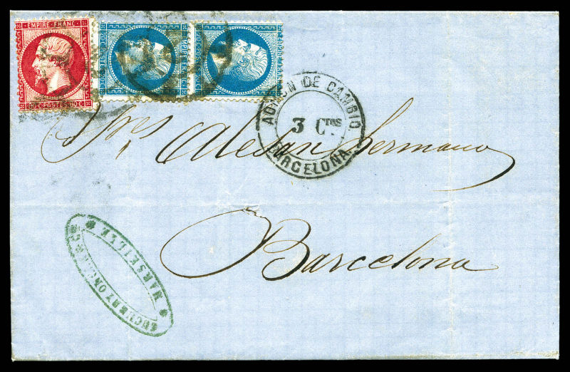 508 image1863, 20c Empire dentelé en paire + 80c Empire dentelé obl roue de charette, à coté cachet rond Admon de Cambio / Barcelona. SUP. (certificat) Qualité: Oblitéré (Image) (image2) (All Images)