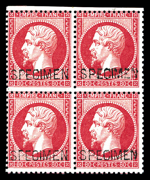 514 imageN°24d, 80c rose surchargé 'SPECIMEN' en bloc de quatre bdf (1ex*), fraîcheur postale, SUP (certificat) Qualité: ** (Image) (image2) (All Images)